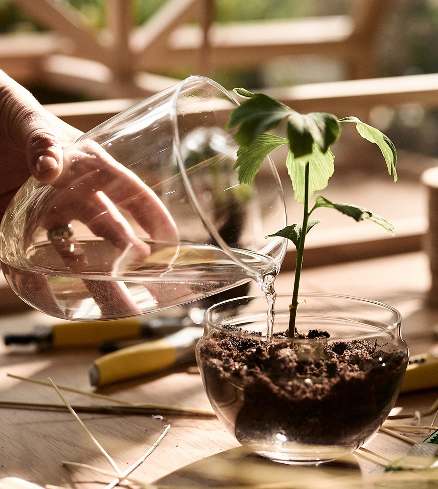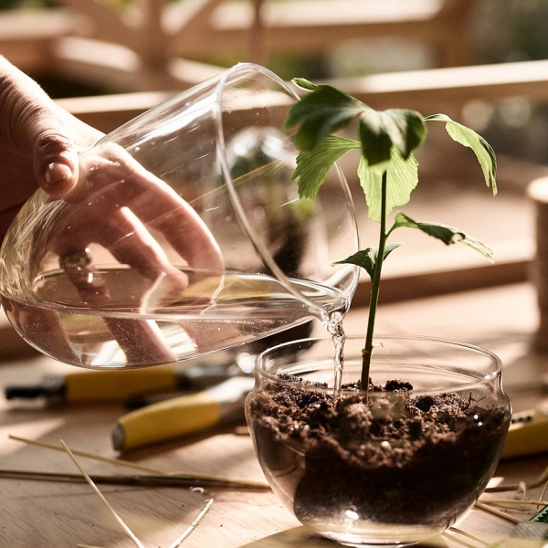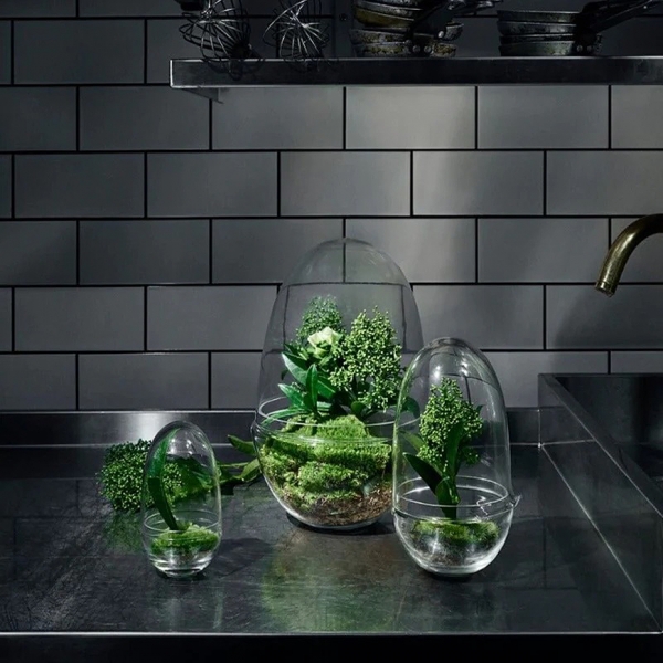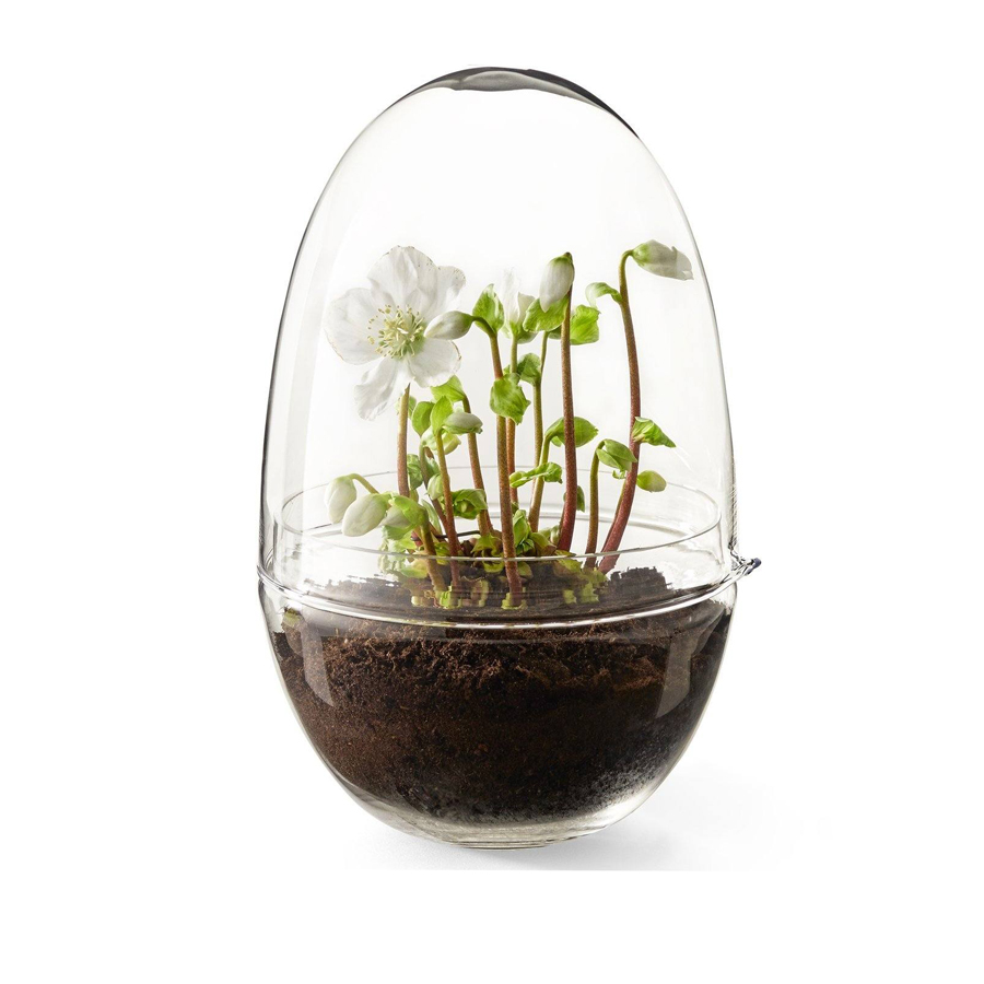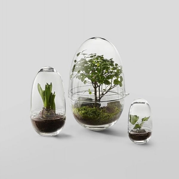 Mini rastlinjak Grow, ki ga je oblikovala Caroline Wetterlings, je sestavljen iz dveh steklenih delov. Spodnji del drži zemljo in rastlino. Zgornji del pa je pokrov, opremljen z izlivom, zato je lahko hkrati tudi zalivalka. Izliv deluje tudi kot ventil, ki prepušča zrak in uravnava raven vlage in temperature v rastlinjaku.