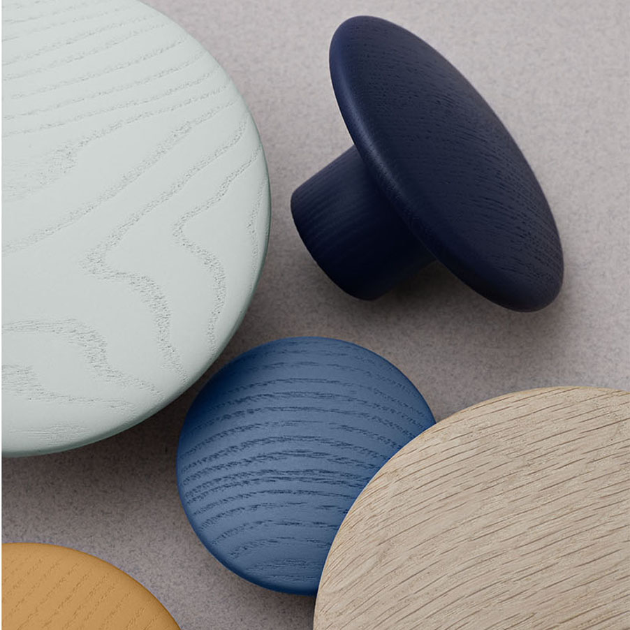 Priljubljena kolekcija Dots ponuja značilne obešalnike v različnih velikostih, barvah in materialih – naredite edinstven, grafični vzorec na svoji steni ali osvežite svoje pohištvo za shranjevanje z uporabo obešalnikov Dots kot ročajev za omare, vitrine ali predale.