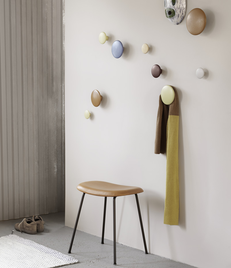 Muuto obešalniki Dots, ki jih je oblikoval Lars Tornøe, ponujajo čudovit način za obešanje oblačil, torb, brisač in dodatkov. Izdelane iz gladkega, brušenega lesa v obliki kroga, Dots ustvarjajo živahno in igrivo okolje, na primer na steni hodnika, kuhinje ali spalnice.