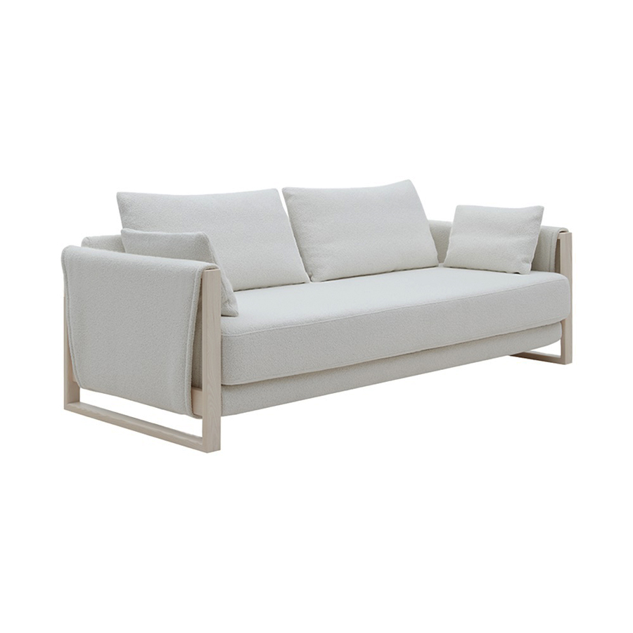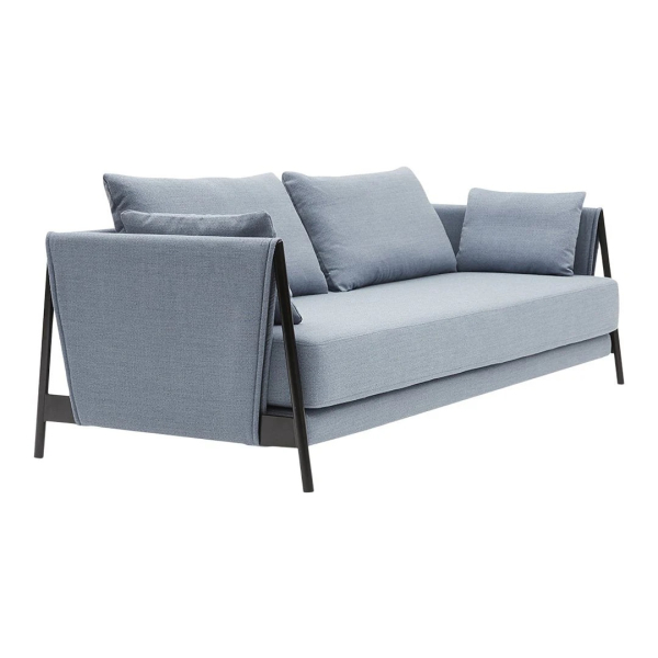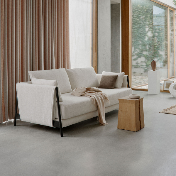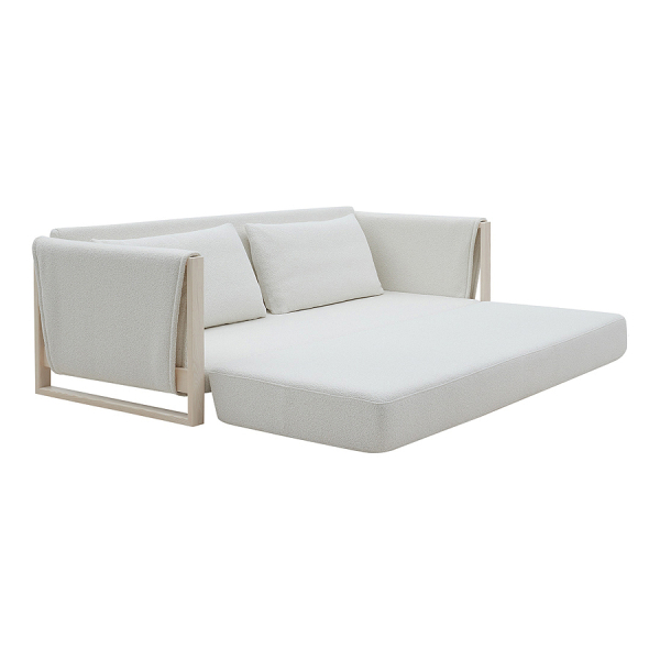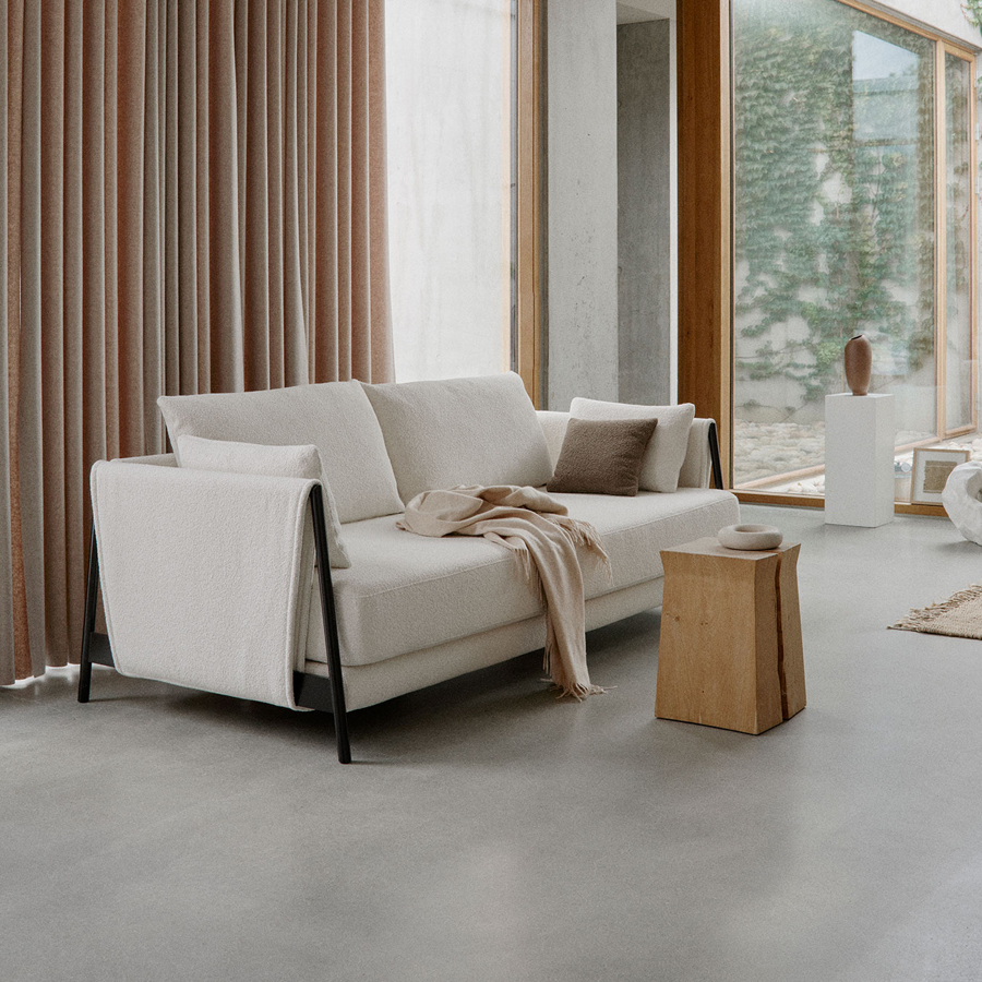 MADISON je enostaven raztegljiv kavč, namenjen sedenju ali spanju, ki uteleša skandinavski življenjski slog "hygge". Ima koničaste blazine, ki jih je mogoče poljubno razporediti. Lahko se jih uporablja kot naslonjala za roke, ledveno oporo ali dodaten naslon za hrbet.