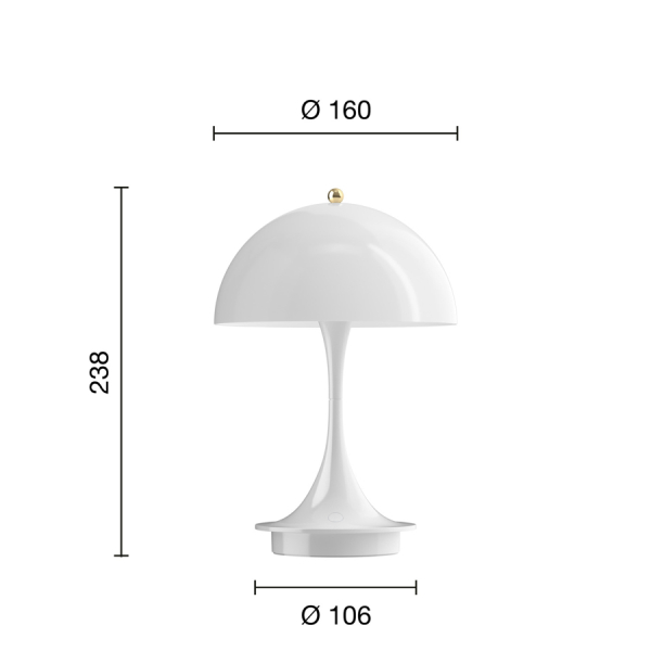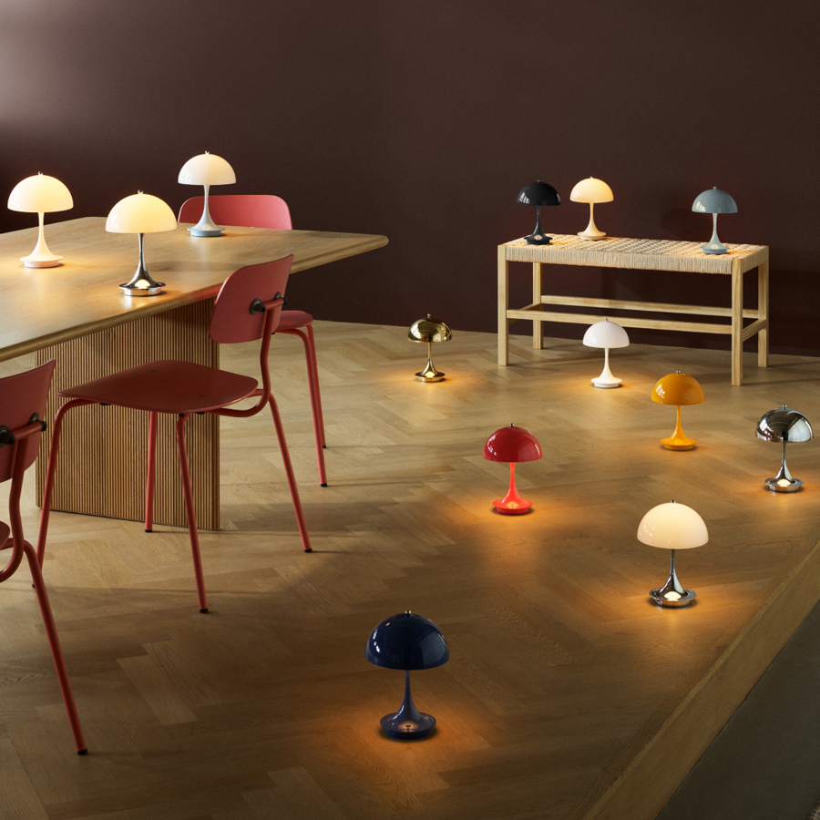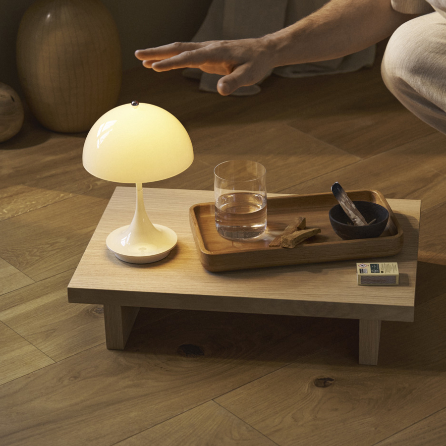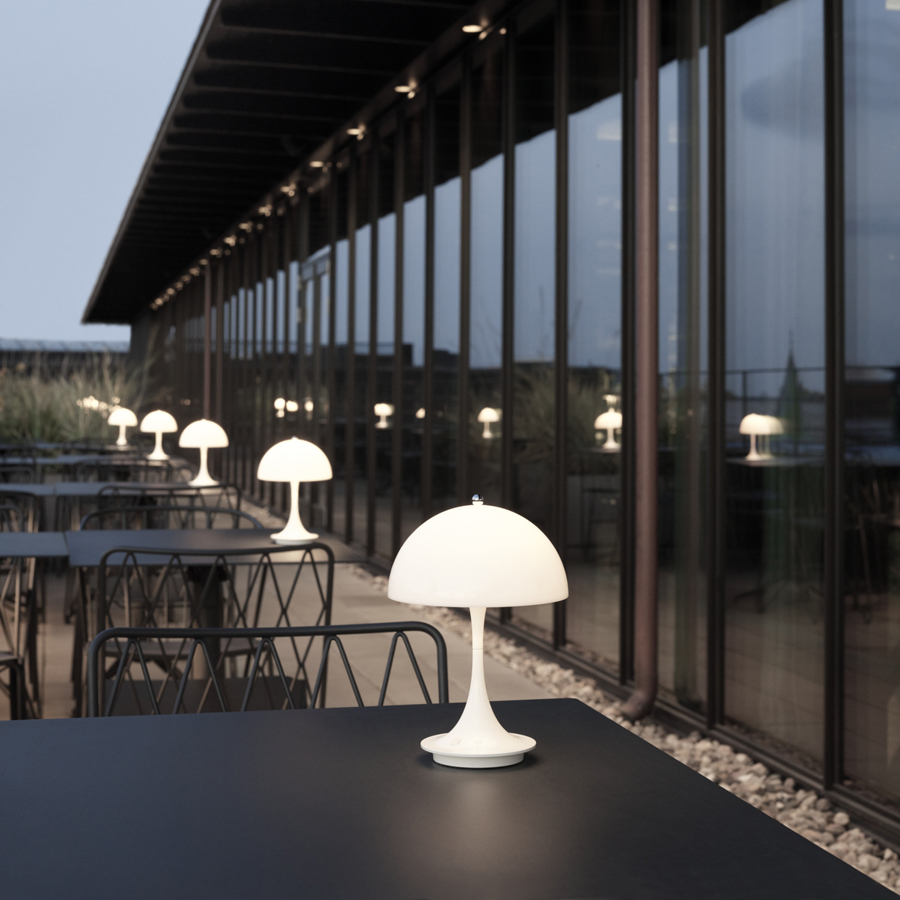 Novo in izboljšano različico prenosne svetilke Panthella lahko vzamete kamor koli in uživajte v urah in urah svetlobe. Polnite jo lahko s kablom USB in ima vzdržljivejšo, zamenljivo baterijo za daljšo uporabo. Ko je popolnoma napolnjena, zagotavlja približno 8,5 ur svetlobe pri 100 % in do 79 ur, ko je zatemnjena na 10 %.